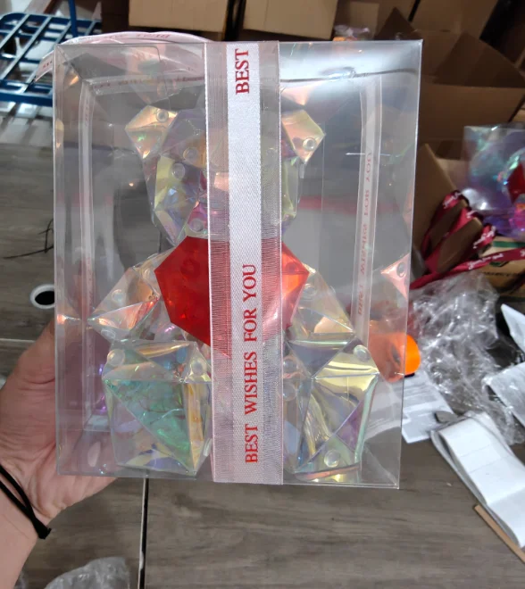 Produkt zapakowany jest w przezroczyste, stylowe pudełko prezentowe z ozdobną wstążką „BEST WISHES FOR YOU”. Dzięki temu jest gotowy do wręczenia bez dodatkowego pakowania.