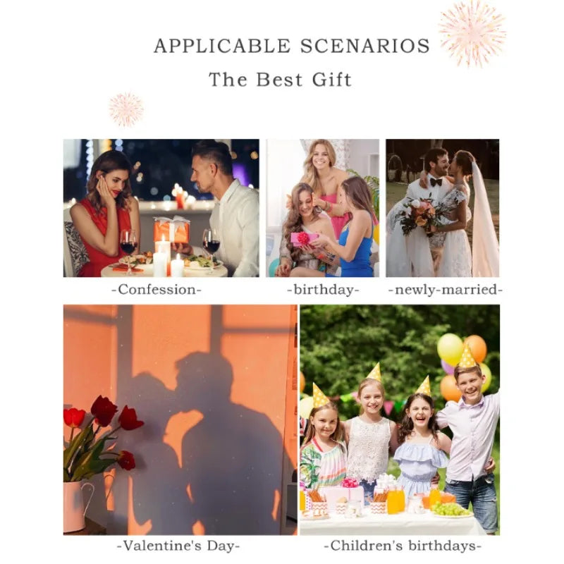 Naszyjnik miłości z cyrkonią „I Love You” w 100 językach – wisiorek z projekcją dla kobiet, w pudełku prezentowym z 9 różami