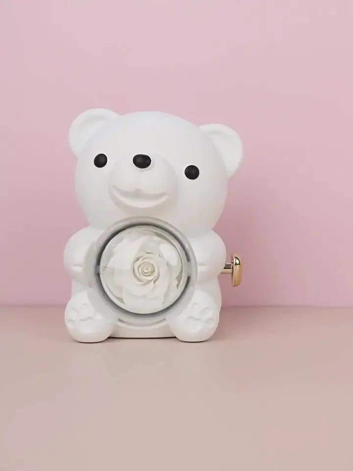 Pudełko z wieczną różą i misiem wyróżnia się eleganckim designem oraz obrotową różą. Kompaktowy rozmiar sprawia, że jest łatwe do przenoszenia i doskonale nadaje się na wyjątkowe okazje.